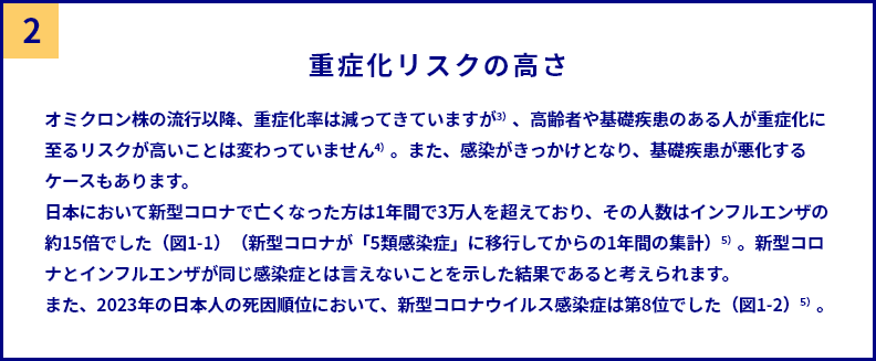 また、ワクチン定期接種の対象者である高齢者や基礎疾患のある方は、重症化を予防するための対策の1つとして、変異株にも対応したワクチン接種を検討していただければと考えています。