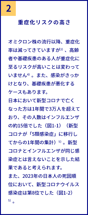 新型コロナの感染症法上の位置づけが「2類感染症」から「5類感染症」に移行したことで、 「新型コロナって、もう普通のかぜやインフルエンザと同じなんじゃない?」と考えている人はきっと多いことでしょう。実際、日常生活はコロナ前と変わらなくなってきていますし、新型コロナに関するニュースも少なくなっていますね。